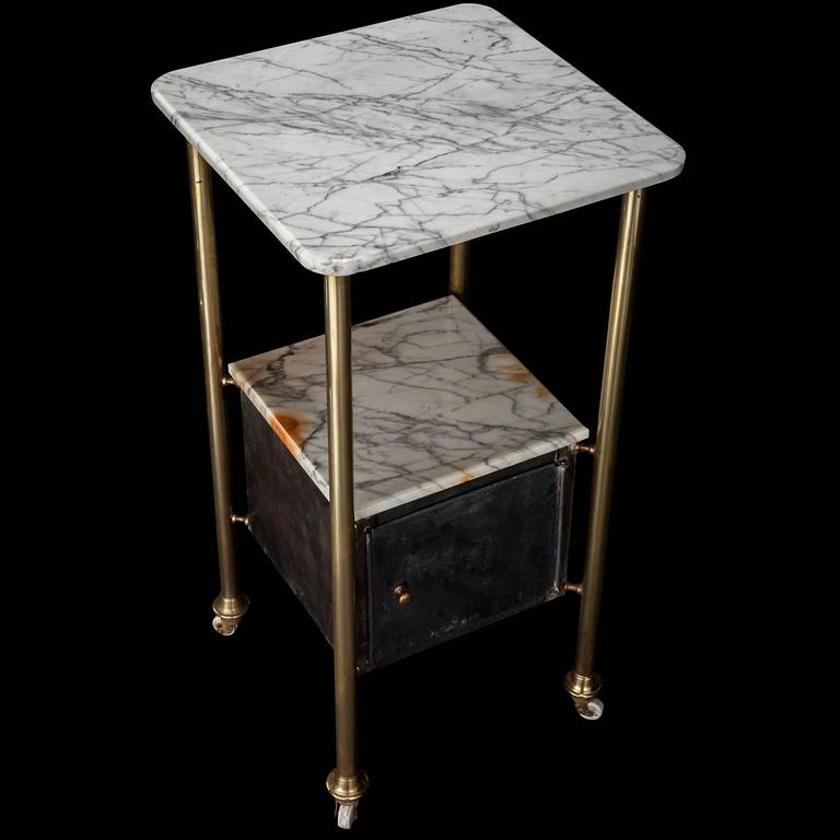 Marble Bedside Table - A PAIR OF STEEL, BRASS AND MARBLE-TOP BEDSIDE TABLES WITH A CHROMED-METAL ADJUSTABLE TABLE LAMP ... / Softwood constructions elaborately veneered with yew and elm root in the form of cubes and fillets, moulded and rounded execution, at the foot marquetry images of schönbrunn palace and the berlin palace, detachable bed head.. Sayre genuine marble 3 legs end table. A simple, elegant silhouette with a resilient, sleek finish keeps the look light and fresh. The ideal bedside accessory, the nightstand has two drawers for concealed storage of small items as well as an open shelf on the bottom for books and larger items. French bedside table art deco walnut wood marble table top carved details antekantyki. Marble marlon marble/brass 25 arched table lamp.